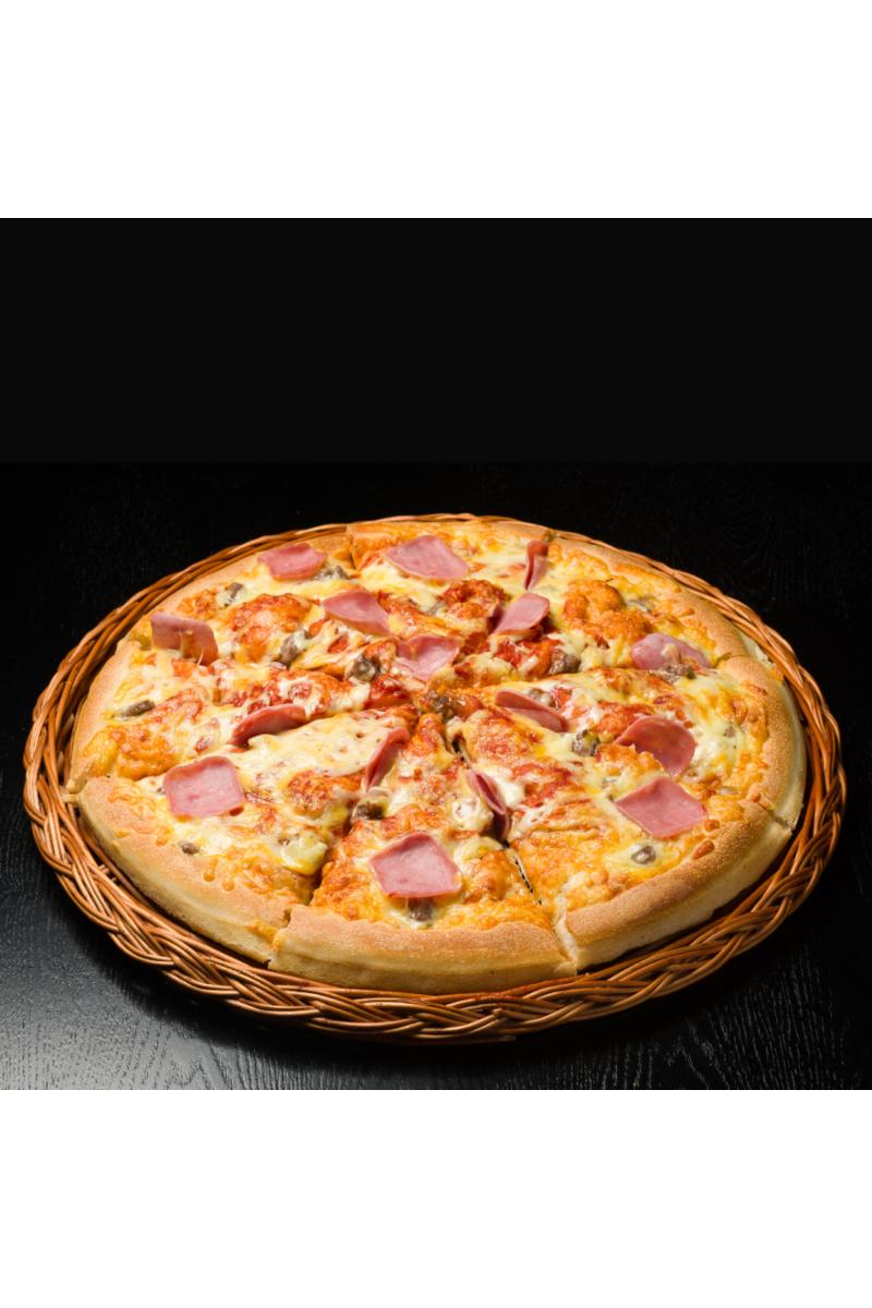 Dollys tomatsaus og osteblanding, skinke og kjøttdeig.